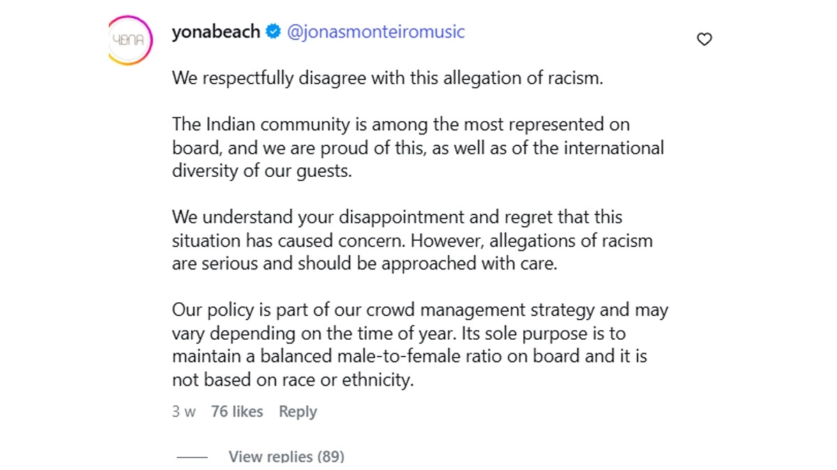 The management added, “We understand your disappointment and regret that this situation has caused concern. However, allegations of racism are serious and should be approached with care. Our policy is part of our crowd management strategy and may vary depending on the time of year. Its sole purpose is to maintain a balanced male-to-female ratio on board and it is not based on race or ethnicity.”