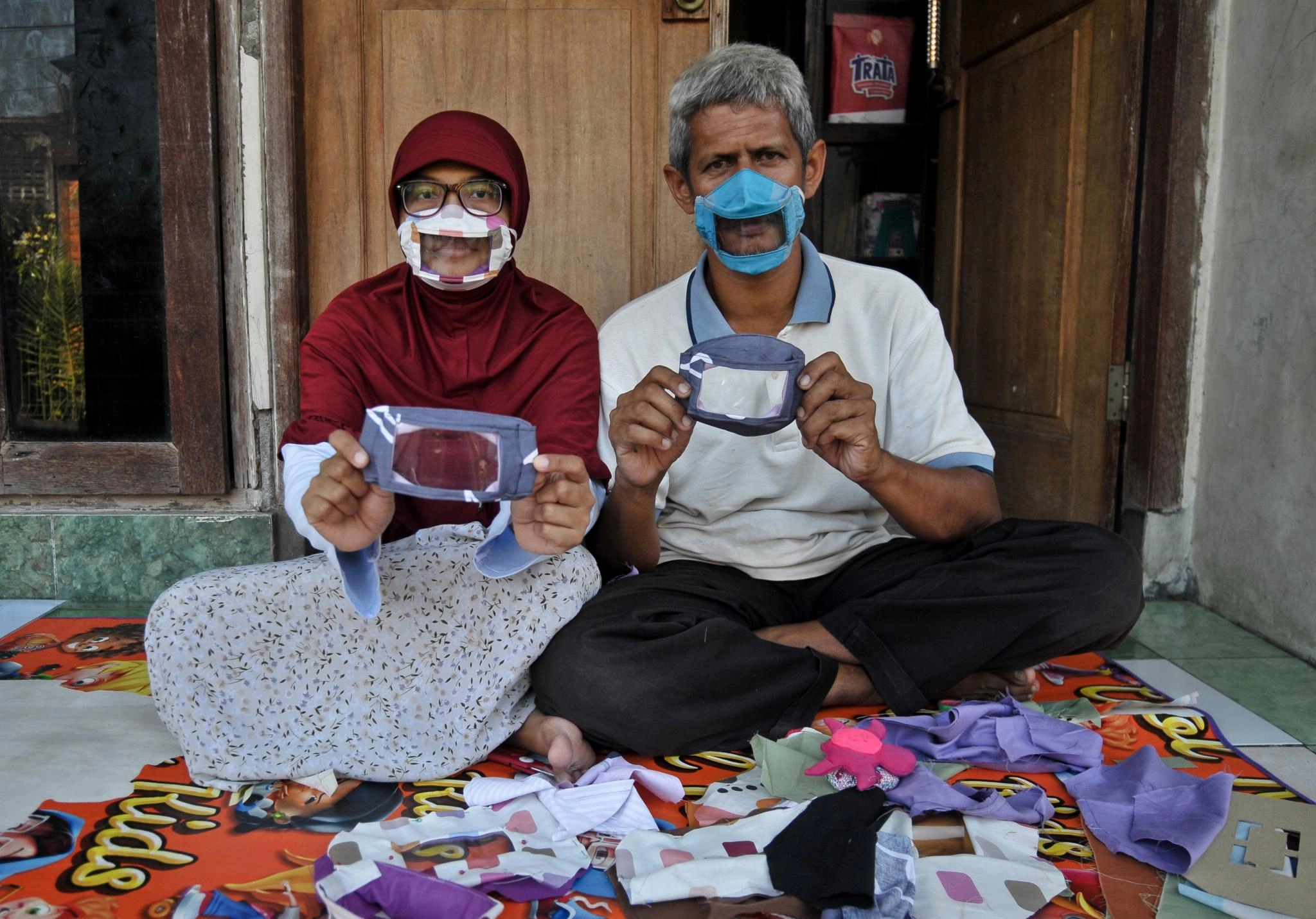 Since early April, the little business has been producing as many as two dozen transparent masks a day in small, medium and large sizes. They sell for between 10,000 rupiah to 15,000 rupiah (65 cents to 97 cents) each.