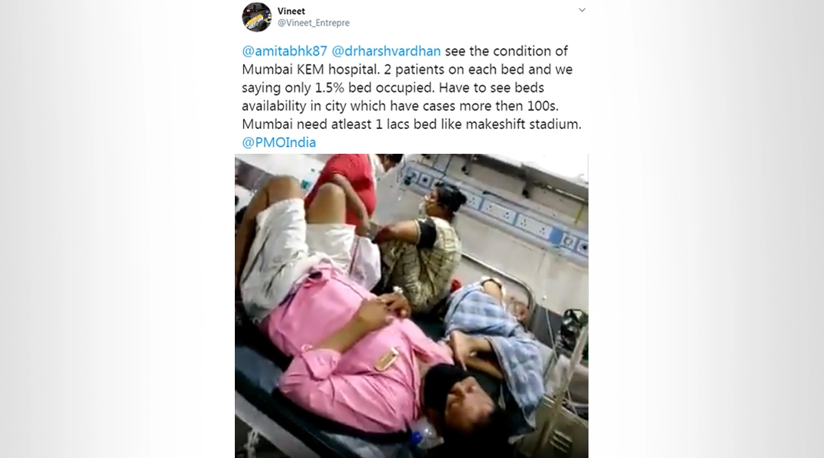 Screenshot of Tweet With Video Showing Overcrowded Ward at KEM Hospital: