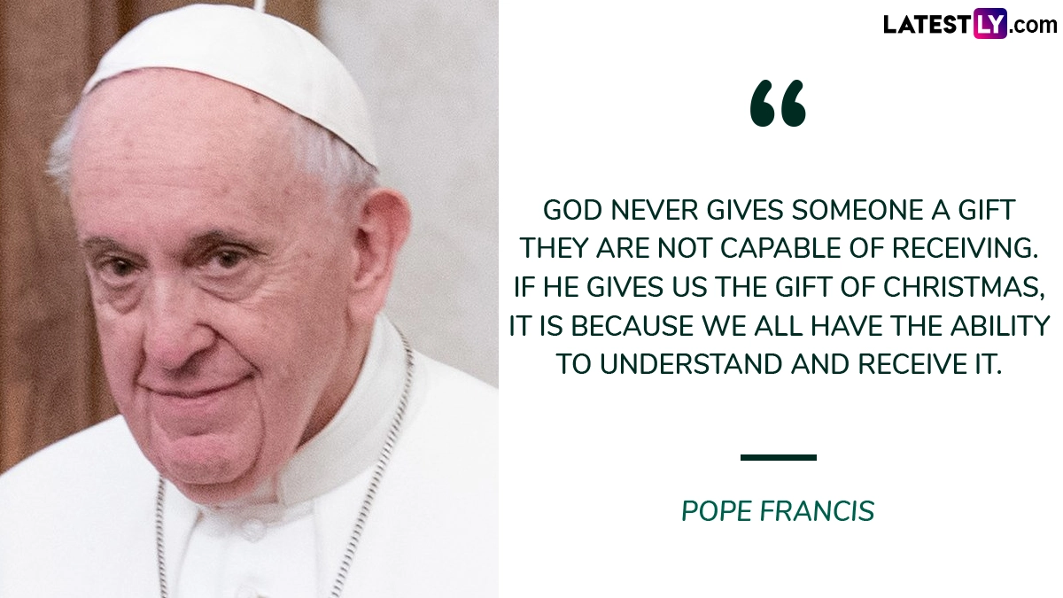 Quote Reads: “God Never Gives Someone a Gift They Are Not Capable of Receiving. If He Gives Us the Gift of Christmas, It Is Because We All Have the Ability To Understand and Receive It.” Pope Francis