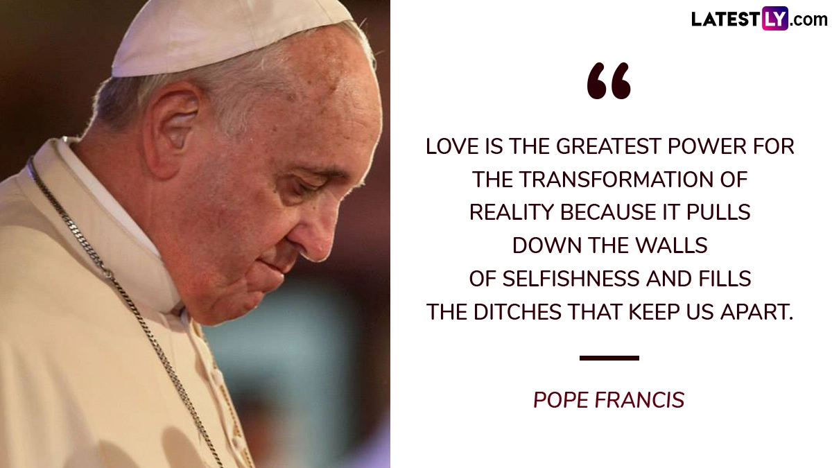 Pope Francis, the 88-year-old leader of the Roman Catholic Church passed away on the morning of April 21, 2025 in the Vatican City. "This morning at 7:35 AM the Bishop of Rome, Francis, returned to the home of the Father," said Cardinal Kevin Farrell in the statement published by the Vatican on its Telegram channel. Pope Francis was the first pope from Latin America, the first Jesuit to ascend to the papacy, and the first non-European pontiff in over 1200 years. His historic election was seen as a move toward reform, diversity and a more inclusive Church. Throughout his papacy, Pope Francis was widely recognised for his humility, progressive social views and commitment to serving the marginalised. He chose the name ‘Francis’ in honour of Saint Francis of Assisi, reflecting his dedication to poverty, peace and environmental stewardship. Pope Francis quotes on love, life and aspirations inspire people to lead their lives in the right direction. Pope Francis Dies: Pontiff Passes Away Aged 88 at His Residence in Vatican’s Casa Santa Marta.
