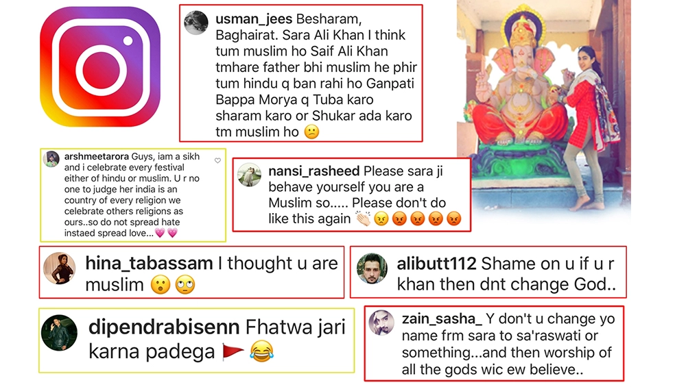 Bollywood actress Sara Ali Khan has been attacked on religious ground after she shared a photograph celebrating Ganesh Chaturthi, one even went to the extent of asking for the invocation of fatwa against her. Sara, daughter of actor Saif Ali Khan and Amrita Singh, took to Instagram, to wish her fans on Tuesday. The "Simmba" star shared an image of her seeking blessings from Lord Ganesha. Sara Ali Khan Pokes Fun at Herself in a Throwback Pic, Funny Caption Wins Netizens Over.