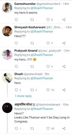 Tharoor's tweet had evoked curiosity among his followers on the micro-blogging site, who began wondering what the Thiruvananthapuram lawmaker had intended to say. Many among them asked Tharoor whether he was praising the Prime Minister as "my hero".