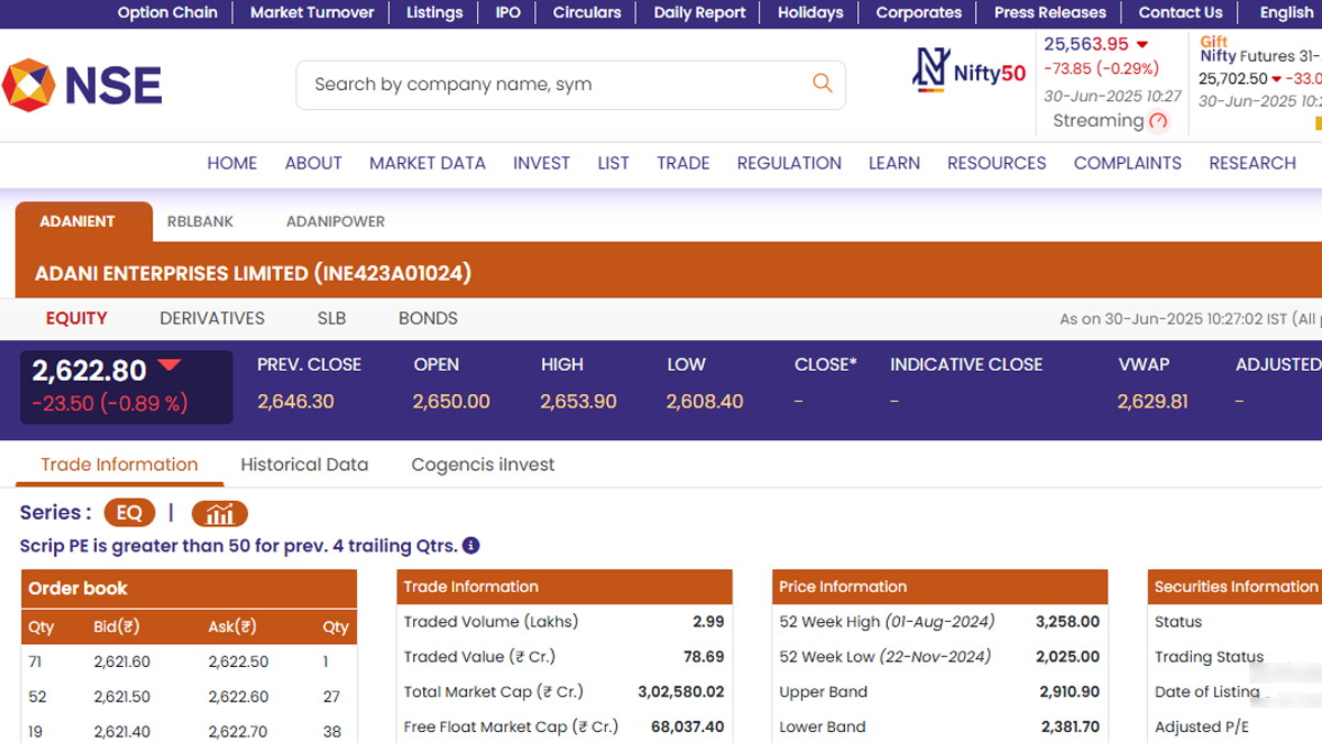 Adani Enterprises Share Price Today, June 30, 2025