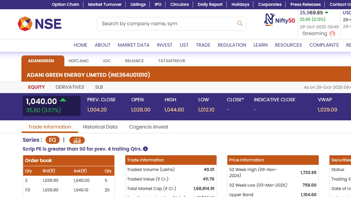 Adani Green Share Price Today, October 29, 2025