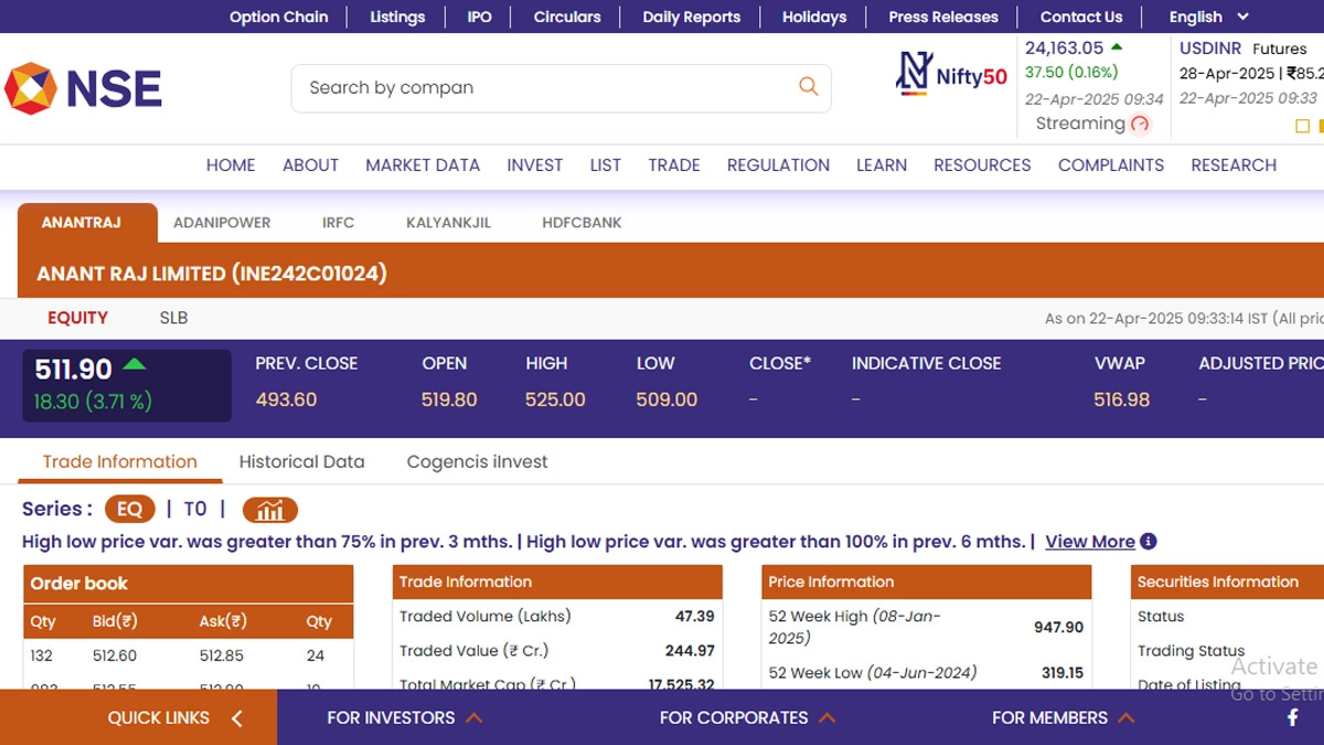 Shares of Anant Raj opened in green today. (Photo credits: NSE)(SocialLY brings you all the latest breaking news, fact checks and information from social media world, including Twitter (X), Instagram and Youtube. The above post contains publicly available embedded media, directly from the user's social media account and the views appearing in the social media post do not reflect the opinions of LatestLY.)