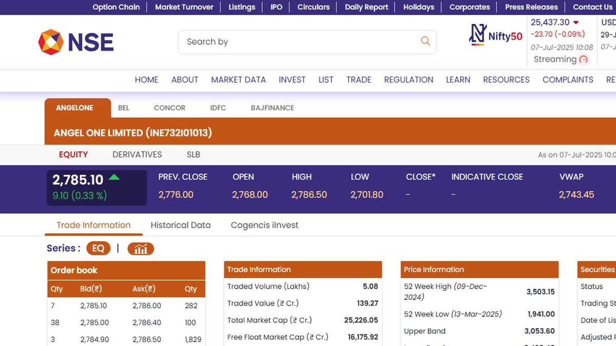 Angel One Share Price Today, July 7, 2025