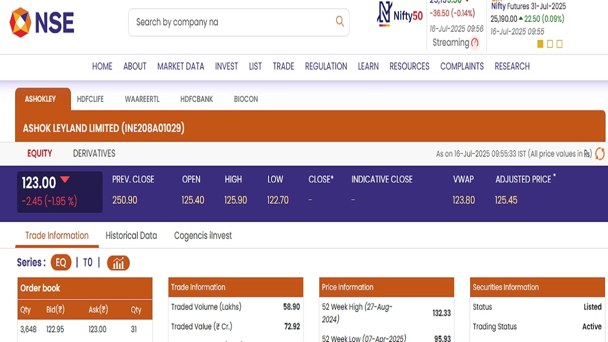 Ashok Leyland Share Price Today, July 16 2025