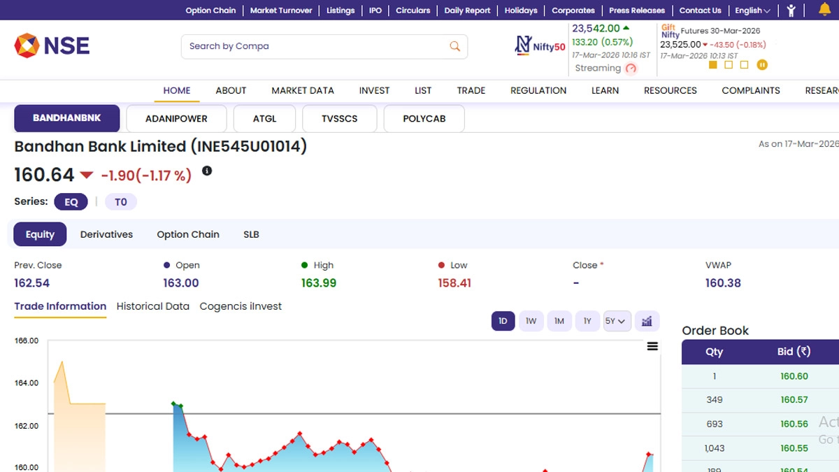 Shares of Bandhan Bank Limited (NSE: BANDHANBNK) opened in the red today, March 17, as soon as the stock market opened for business. According to the National Stock Exchange (NSE) website, stocks of Bandhan Bank Limited (NSE: BANDHANBNK) were trading at INR 160.64 and fell by INR 1.90 or 1.17 per cent. Notably, shares of Bandhan Bank fell by over 12 per cent on Monday, March 16. The stocks of Bandhan Bank Limited (NSE: BANDHANBNK) saw their 52-week high of INR 192.48 on June 30 last year and low of INR 134.25 on December 9, 2025. Why Did Bandhan Bank Share Fall Over 12% Today, March 16, 2026?