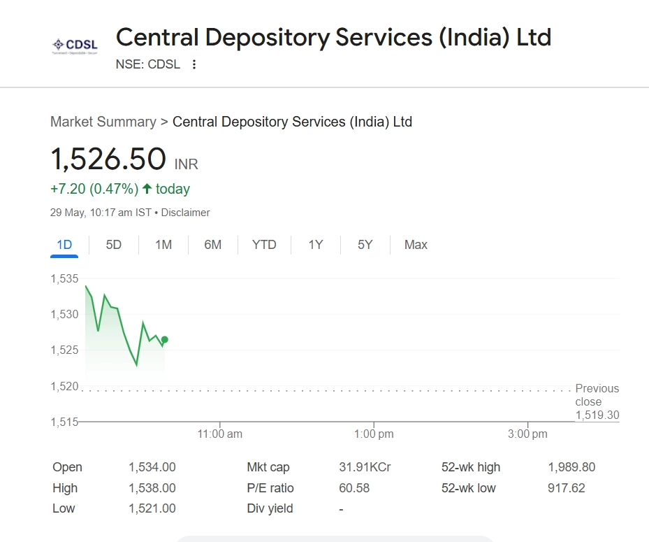 Shares of Central Depository Services (India) Ltd (CDSL) (NSE: CDSL) rose 0.45% to INR 1,526.10 in early trade on May 29, reflecting improved investor sentiment. The stock has shown steady momentum amid broader market gains and increasing interest in capital markets. CDSL, a key player in India’s depository ecosystem, continues to benefit from strong growth in demat account openings and increased retail participation, supporting its long-term fundamentals and stock performance. Stocks To Buy or Sell Today, May 29, 2025: Finolex Cables, Gensol Engineering, Bata India and IRCTC Among Shares That May Remain in Spotlight on Thursday.