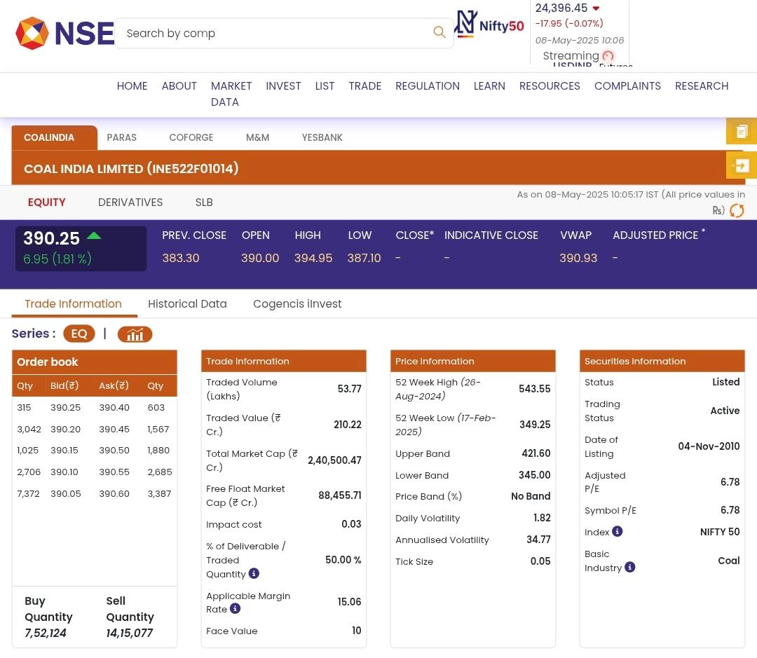 Coal India Share Price Today, May 8