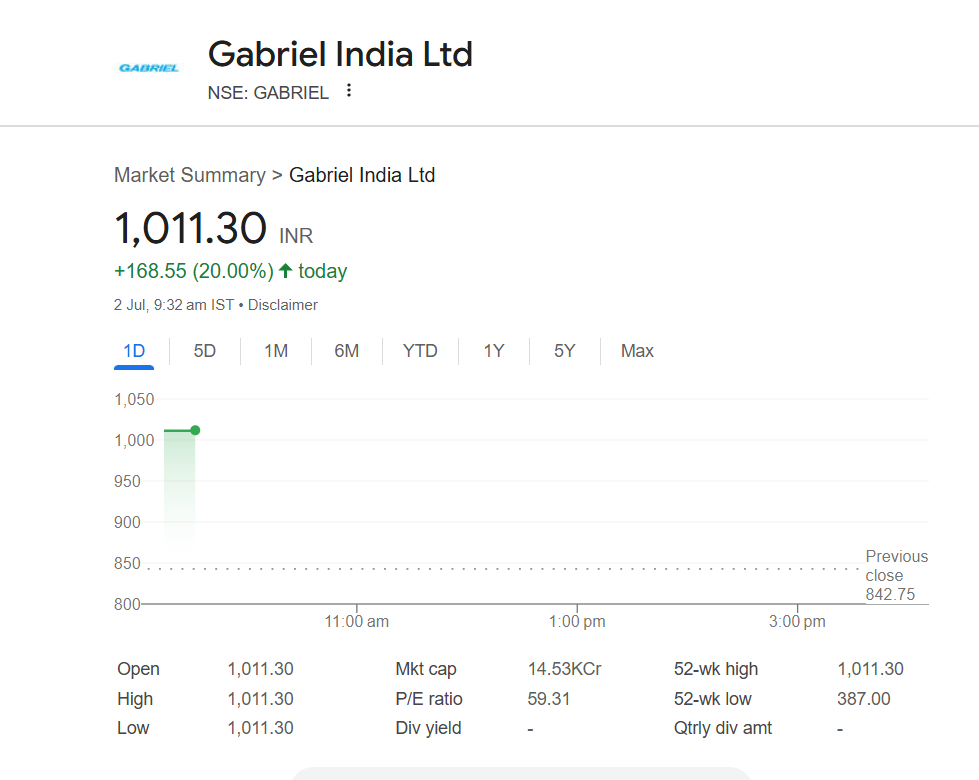 Gabriel India share price (NSE: Gabriel) skyrocketed 20% on July 02, hitting a record high of INR 1,011.30 after the company announced a strategic restructuring plan. The move includes the amalgamation of Anchemco India Pvt Ltd into Asia Investments Pvt Ltd, followed by the demerger of Asia Investments’ automotive business into Gabriel India. This corporate overhaul is part of the group’s ambitious roadmap to achieve a INR 50,000 crore revenue milestone by 2030. The stock’s momentum continued into July 2 as investor sentiment surged on growth optimism. Stocks To Buy or Sell Today, July 2, 2025: Hyundai Motor India, Maruti Suzuki India and Lupin Among Shares That May Remain in Spotlight on Wednesday.