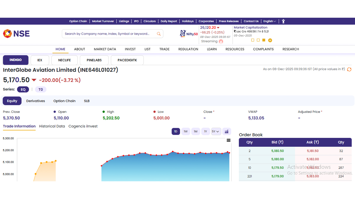 InterGlobe Aviation Limited Share Price Today, December 8, 2025