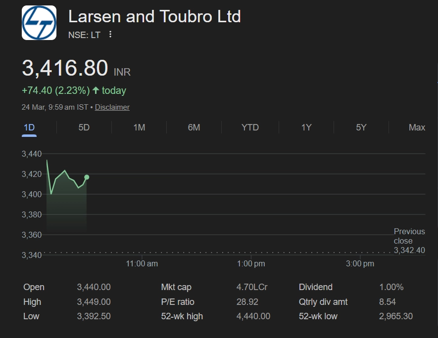 L&T Share Price on March 24