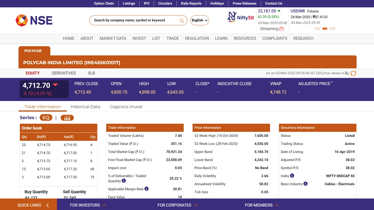 Polycab Share Price on NSE (Photo Credits: nseindia.com)