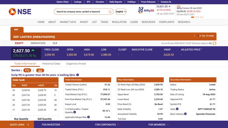 SRF Ltd Share Price Today, January 9: SRF Stock Climbs 13% As Refrigerant Gas Prices Soar in US