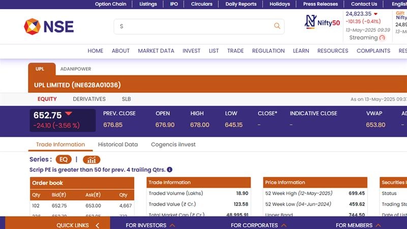 Stocks of UPL Limited (NSE: UPL) opened in red today, May 13, as soon as the Indian stock market opened for business. According to the National Stock Exchange (NSE) website, shares of UPL Limited (NSE: UPL) were trading at INR 652.75 and fell by INR 24.10 or 3.56 per cent in early trade. Notably, UPL Limited (NSE: UPL) saw its 52-week high of 699.45 on Monday, May 12 and 52-week low of INR 459.62 on June 4 last year. Stocks To Buy or Sell Today, May 13, 2025: Tata Steel, Paytm and Raymond Lifestyle Among Shares That May Remain in Spotlight on Tuesday.