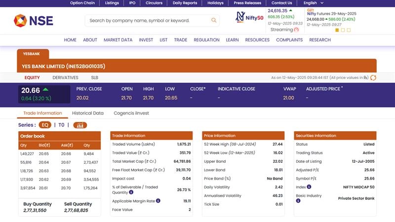 Shares of Yes Bank Ltd (NSE: YESBANK) rose by 3.20% today, trading at INR 20.66, up from the previous close of INR 20.02. The surge follows Japan's Sumitomo Mitsui Banking Corporation (SMBC) announcement to acquire a 20% stake in the bank from a State Bank of India-led consortium. The deal, valued at INR 13,483 crore, will make SMBC the largest shareholder of Yes Bank. SBI will offload 13.19% of its stake, while other banks, including Axis Bank and HDFC Bank, will sell the remaining 6.81%. This transaction is seen as a significant boost to Yes Bank’s stability and growth prospects. The stock is still below its 52-week high of INR 27.44 but has shown positive momentum. Stocks To Buy or Sell Today, May 12, 2025: Yes Bank, Tata Motors, Godrej Properties Among Shares That May Remain in Focus on Monday.