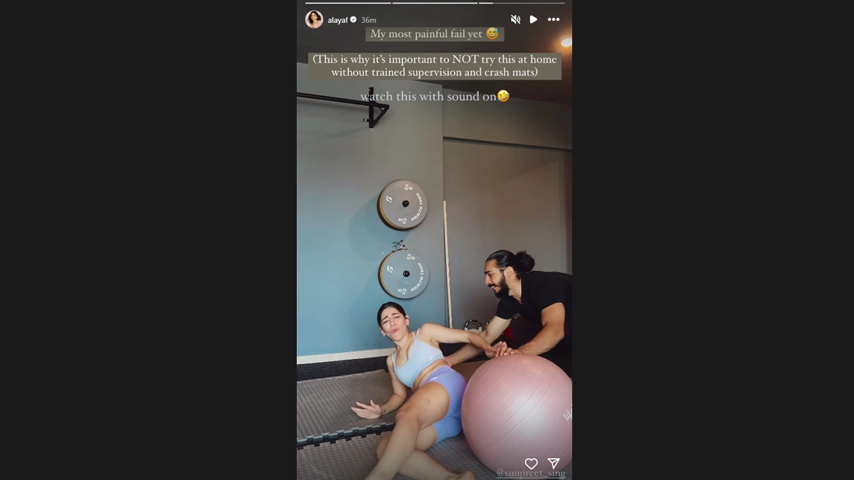 Alaya F, renowned for her fitness regimen, recently shared a cautionary video emphasising the importance of exercising under ‘trained supervision’ and ‘crash mats’. In the clip, the actress can be seen falling off a gym ball, resulting in a ‘painful’ incident. This serves as a stark reminder for fitness enthusiasts to prioritise safety during workouts. 'Srikanth' Actress Alaya F's Toned Midriff Deserves Your Attention, 7 Pics to Check Out!
