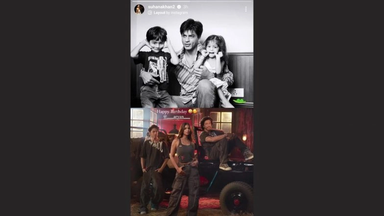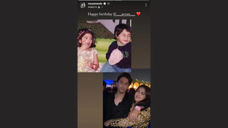 Bollywood superstar Shah Rukh Khan's son Aryan Khan celebrates his 27th birthday on Tuesday (November 12). Interestingly, the star kid celebrates his special day just 10 days after his dad's birthday. Social media has been flooded with birthday wishes for Aryan Khan, and now two close ones have also shared their heartfelt messages for him. Taking to their Instagram stories, Aryan Khan's sister, Suhana Khan and best friend, Navya Naveli Nanda, shared birthday wishes. Both Suhana and Navya shared unseen throwback pictures of them along with Aryan. However, the highlight was Alia Chhiba's birthday wish for him. Alia, who happens to be a cousin to Aryan Khan, wishes him a monochromatic childhood picture where he looks completely unrecognisable. Take a look. Aryan Khan Calls Shah Rukh Khan a Marketing Genius, Talks About King Khan’s Influence on His Entrepreneurial Journey.