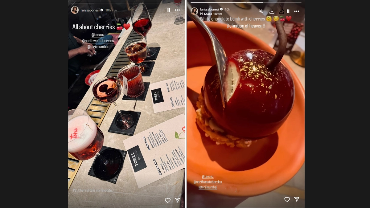 Aryan Khan’s rumoured girlfriend, Brazilian model Larissa Bonesi, turned heads during her Monday (July 29) night out in Mumbai. Seen outside Gauri Khan’s restaurant, Larissa dazzled in a chic red bodycon dress, complemented with minimal accessories. Flashing her million-dollar smile, she captivated onlookers and posed gracefully for photographers. The Brazilian beauty also offered a glimpse of the drinks and dessert she indulged in at the plush restaurant, posting on her Insta Story the varieties of cherry-made drinks and dessert. Rumours of her relationship with Shah Rukh Khan and Gauri Khan’s son have been circulating online for a while now, though neither Aryan nor Larissa have confirmed or denied the dating reports. Who Is Larissa Bonesi? Here’s Everything You Need To Know About Shah Rukh Khan’s Son Aryan Khan’s Rumoured Brazilian Girlfriend.
