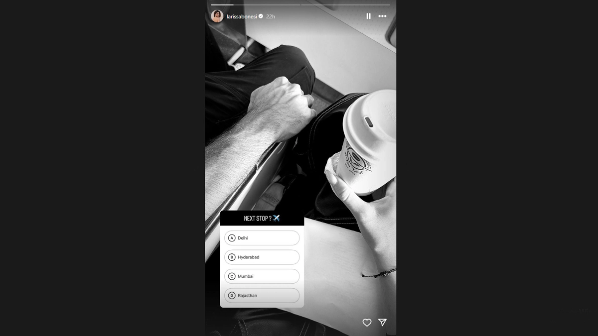 Rumours have been circulating that Aryan Khan, son of Shah Rukh Khan and Gauri Khan, is dating Larissa Bonesi. Neither of them has responded to these speculations yet. However, the Brazilian actress’ latest Insta post has caught everyone’s attention. Larissa shared a monochrome picture of herself holding a coffee cup, seated next to a mystery man. The photo, seemingly taken at an airport, has gone viral on various social media platforms. Who Is Larissa Bonesi? Here’s Everything You Need To Know About Shah Rukh Khan’s Son Aryan Khan’s Rumoured Brazilian Girlfriend.