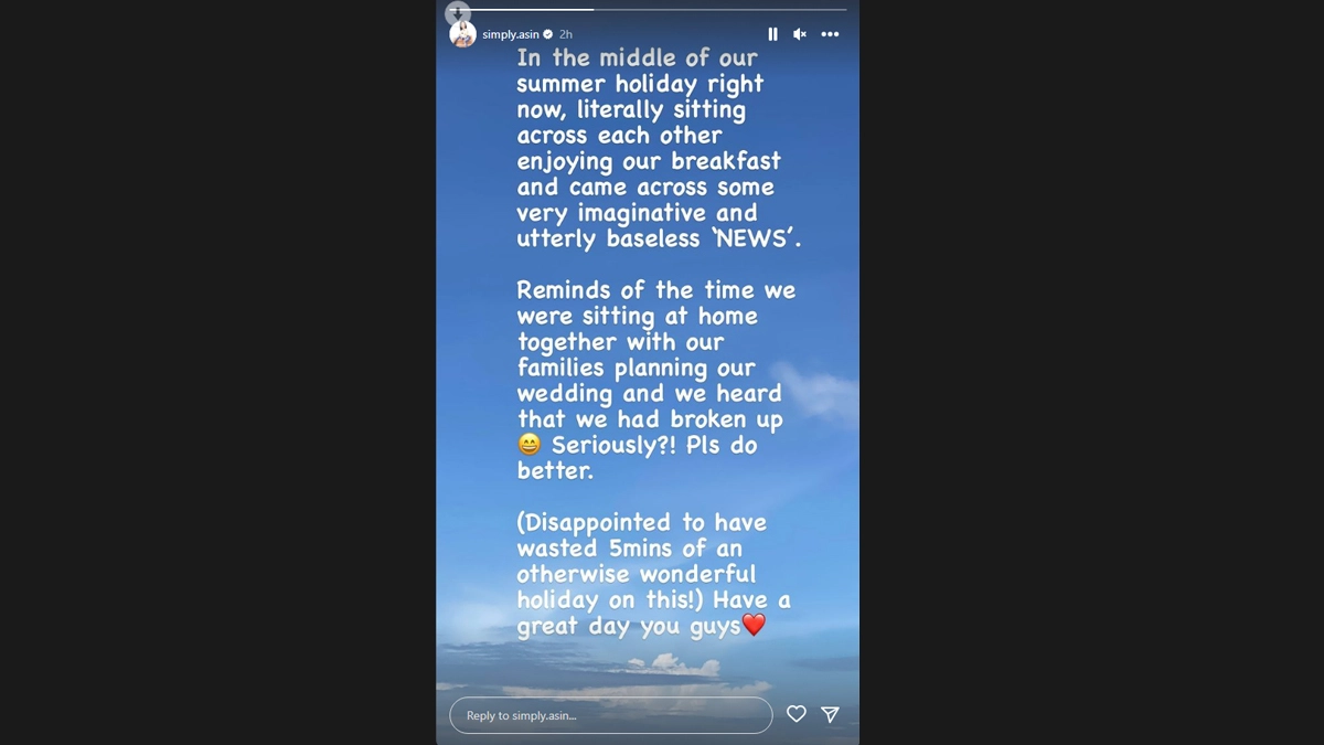 Asin Thottumkal, who is popularly known for her role in the film Ghajini, has reacted to rumours around her marital life. Reports surfaced online that the actress is getting divorced from her husband Rahul Sharma. The rumours of Asin and Rahul’s divorce started doing rounds after it came under notice that the former has deleted all her pictures with her husband from her Instagram profile. She has now slammed those divorce rumours saying, “In the middle of our summer holiday right now, literally sitting across each other enjoying our breakfast and came across some very imaginative and utterly baseless ‘NEWS’.” Is Asin Getting Divorced? Actress Sparks Separation Rumours After She Deletes All Pics With Husband Rahul Sharma on Instagram.