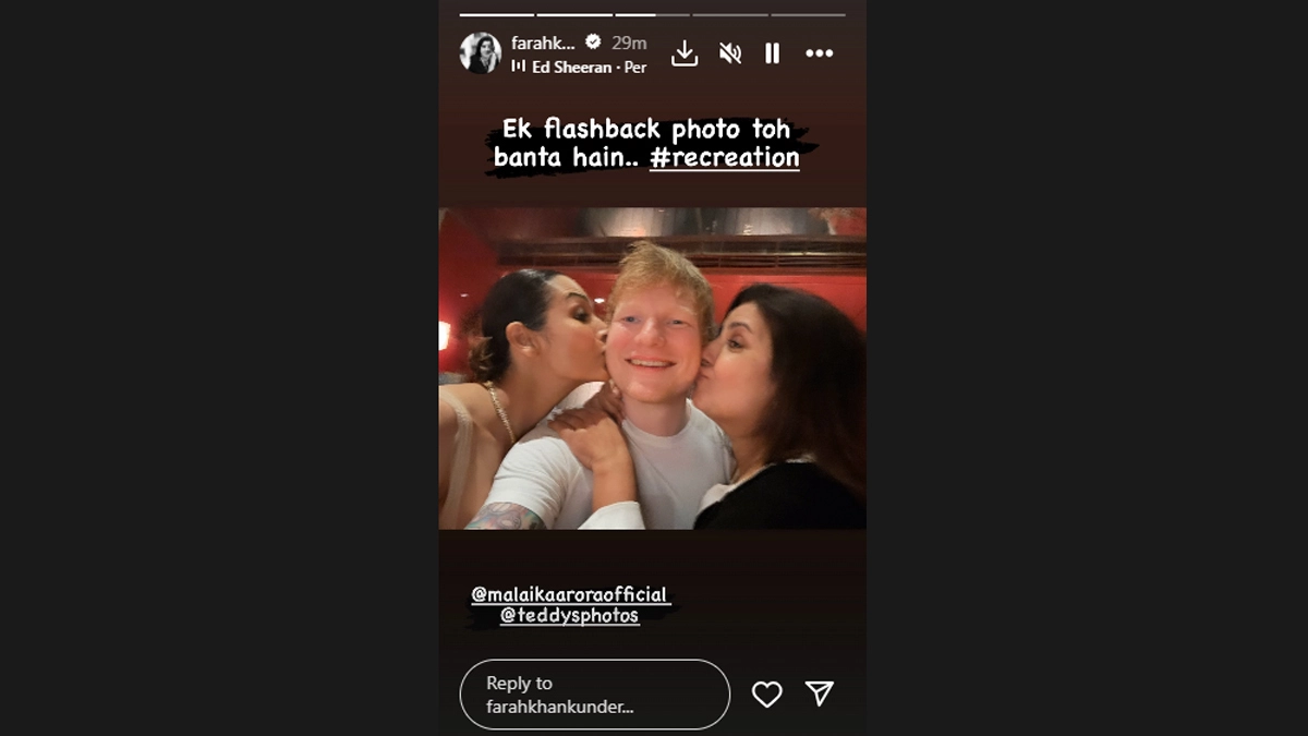 Farah Khan hosted a star-studded party last evening in honour of singer Ed Sheeran. She took to IG to share some fun-filled moments from the celebration, and one of the pictures is sure to leave you awestruck. It captures Malaika Arora and Farah showering the British singer with kisses, leaving him blushing uncontrollably. Undoubtedly, this is the sweetest picture from the party. Ed Sheeran Parties With Bollywood Celebs! Hrithik Roshan, Saba Azad, Aryan Khan, Malaika Arora and Others Arrive at Farah Khan-Hosted Party for the ‘Perfect’ Singer (View Pics & Watch Videos).