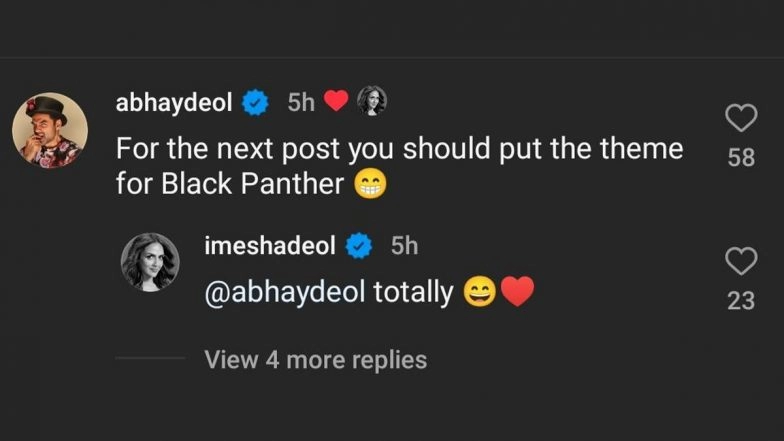 Esha Deol took to her social media and dropped a picture with her "Mr D", and it's none other than Abhay Deol. On Saturday, May 11, Esha Deol took to her Instagram handle and treated fans with a delightful selfie with her cousin Abhay Deol. The actress dropped the post with a Pink Panther audio theme that sparked a full-filled banter between the two. Sharing the post, Esha wrote, Mr. D in the house (The background music theme says it all)" Abhay was quick to respond to Esha's post in his trademark humour and wrote, "For the next post, you should put the theme for Black Panther" The playful banter between the two showcases the close bonding shared by the duo. For the unversed, Abhay Deol is the son of Ajit Deol, who is the brother of Esha Deol's father, acting icon Dharmendra. Dharmendra-Hema Malini 44th Wedding Anniversary: Daughter Esha Deol Shares Adorable Post to Celebrate Her Parent’s Special Day (View Pic).