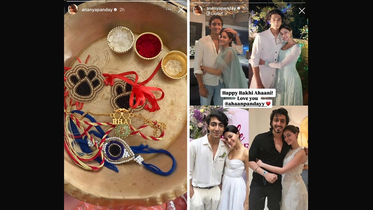 Ananya Panday celebrated Raksha Bandhan with her cousin brother Ahaan Panday in a sweet Instagram post. She shared a collage of pictures showing their close bond—from casual moments in white shirts to festive evenings in traditional outfits. Smiling and affectionate, Ananya’s post reflected their strong family connection. She captioned it, “Happy Rakhi Ahaani! Love you @ahaanpandayy,” expressing her love and pride for Ahaan, who is gaining attention with his debut in Saiyaara. The post gave fans a rare peek into their personal life beyond the glamour of Bollywood, highlighting the warmth and closeness they share as family. Ananya Panday Says ‘A Star Is Born’ to Debutant Ahaan Panday Following Release of His Debut Film ‘Saiyaara’ (See Post)