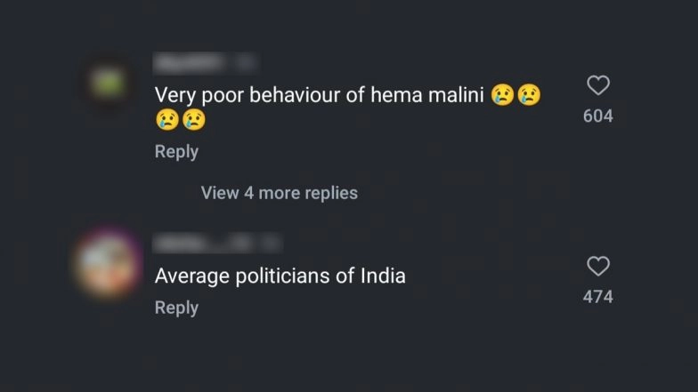 Veteran Bollywood actress and Bharatiya Janata Party (BJP) MP Hema Malini graced an event in Mumbai on Wednesday, August 21. Several pictures and videos of the actress-politician have surfaced online. However, one of such videos caught everyone's attention, and we could see her getting uncomfortable after a woman tried to keep her hand on her shoulder while posing for the paps. In the video shared on Instagram by a paparazzo handle, we could see Hema Malini with singer Anup Jalota and several others. However, when posing for a picture, a woman nearby tries to put her arm around her waist. Visibly uncomfortable, she said, "Haath nahi", while politely asking the lady to move aside. Soon after the video surfaced online, netizens slammed the BJP MP for her gesture. One user wrote, "very poor behaviour." Another user commented, "Galat baat hai. (It is wrong)." 49 Years of ‘Sholay’: From Unforgettable Characters to Cultural Milestone, All You Need To Know About Dharmendra, Amitabh Bachchan and Hema Malini’s Film.