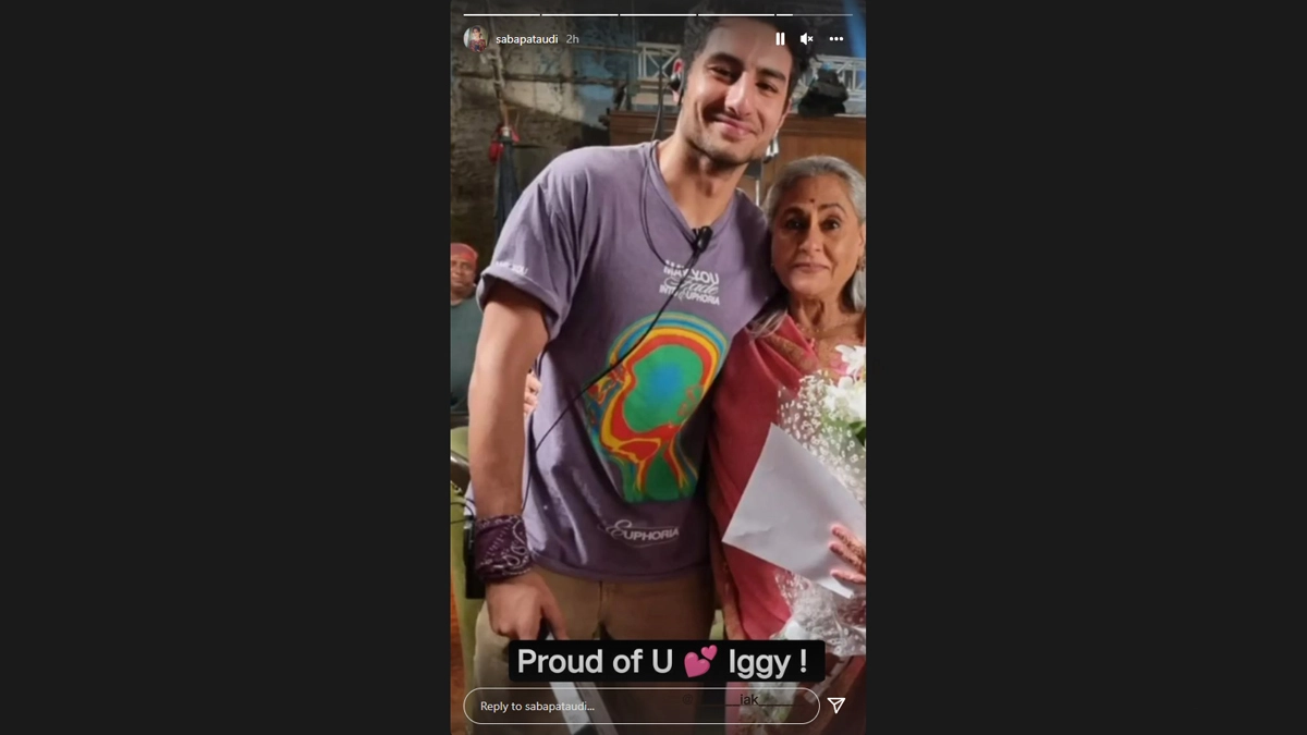 Saif Ali Khan's sister, Saba Pataudi dropped one of the rare pics on her Instagram stories today and it's the cutest. As she shared a photo of nephew, Ibrahim Ali Khan posing with veteran Jaya Bachchan from Karan Johar directorial Rocky Aur Rani Ki Prem Kahani's sets. FYI, Ibrahim has been working as an assistant director for RARKPK which stars Alia Bhatt and Ranveer Singh as the leads. Rocky Aur Rani Ki Prem Kahani: It’s a Wrap for Ranveer Singh, Alia Bhatt, Dharmendra, Jaya Bachchan and Shabana Azmi’s Film by Karan Johar (Watch Video).