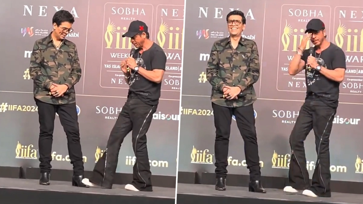 Bollywood superstar Shah Rukh Khan is back in the hosting spotlight, and he’s bringing in the laughs already! SRK will be teaming up with filmmaker and friend Karan Johar to host the 2024 International Indian Film Academy (IIFA) Awards show in Abu Dhabi in September this year. At the IIFA Awards 2024 press conference in Mumbai on September 10, SRK made a hilarious observation about Bollywood’s generational dynamics. He joked, “Next generation paao parti hai, purani wali izzat bhi deti hai.” (The next generation touches the feet, while the older generation still gives respect.) SRK playfully pointed out how the new generation gives him respect and greets him warmly. Earlier, Siddhanth Chaturvedi and Abhishek Banerjee, the new hosts of IIFA 2024, had joked with Karan Johar that their generation takes their own blessings by touching one's feet. In response, Shah Rukh’s witty comment highlighted the mutual admiration between Bollywood’s old and new stars, adding a fun twist to the upcoming awards show in the UAE. Shah Rukh Khan Jokes About Karan Johar’s Shift From Directing Films to Hosting More Chat Shows, Says ‘Picturein Bhi Toh Bana Mere Bhai’.
