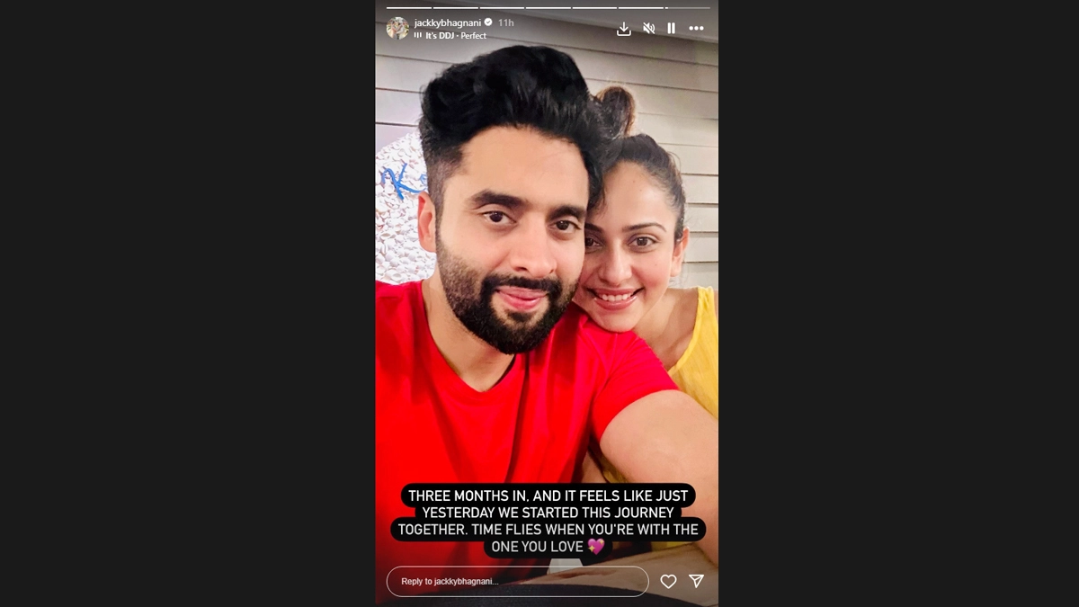 Jackky Bhagnani and Rakul Preet Singh tied the knot on February 21, 2024, in Goa. The couple, currently in Fiji, is celebrating their third month wedding anniversary. Jackky added a special touch to the celebration by penning a love-filled note for his wife along with a cute selfie of the duo. He wrote, “Three months in, and it feels like just yesterday we started this journey together. Time flies when you’re with the one you love.” Bikini-Clad Rakul Preet Singh Glows in Sunkissed Pics From Fiji Trip; Actress Lauds Hubby Jackky Bhagnani's Photography Skills!