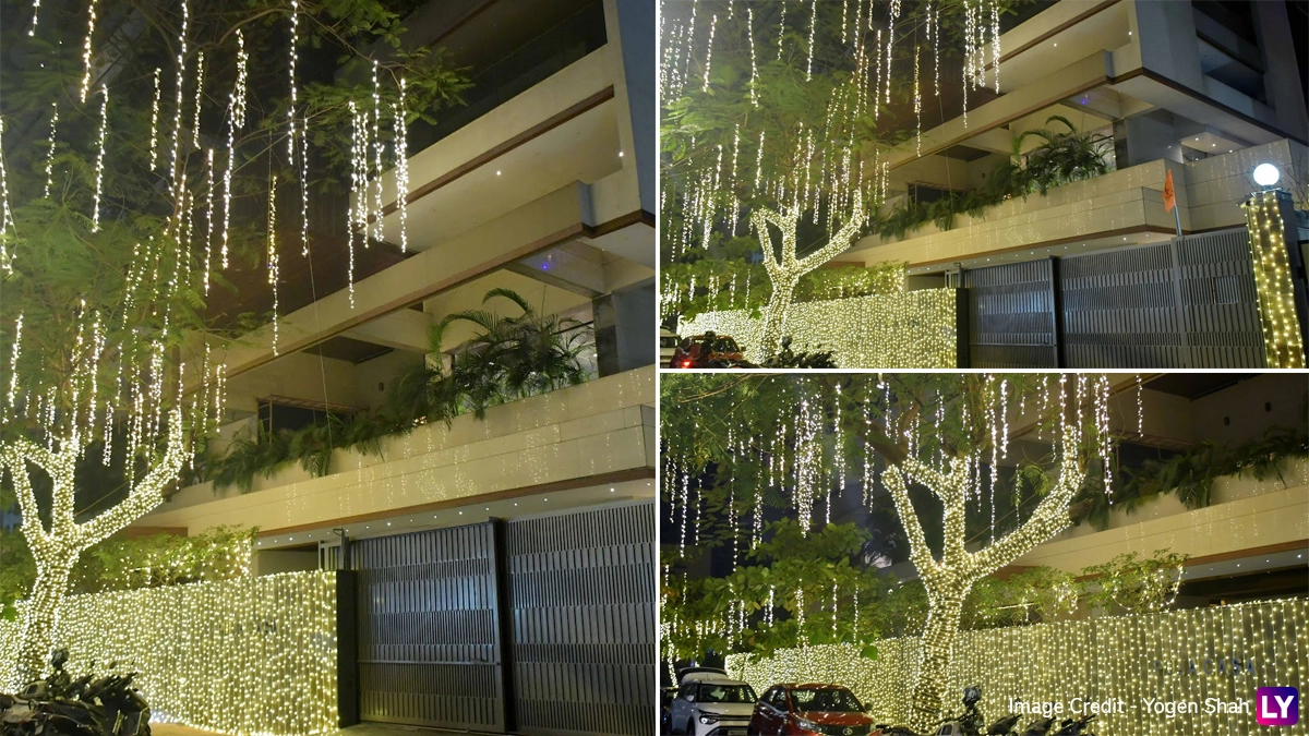 Rakul Preet Singh and actor-producer Jackky Bhagnani prepare to tie the knot in a joyous ceremony in Goa on February 21. As the wedding day approaches, anticipation fills the air, especially at Jackky's residence, where preparations are in full swing. The atmosphere is magical as the apartment is adorned with twinkling lights, creating a mesmerising sight that promises to dazzle as the sun sets. The surrounding trees, also decorated with lights, add to the enchantment, leaving one to imagine the splendour awaiting inside. Jackky Bhagnani-Rakul Preet Singh’s Wedding Invitation Goes VIRAL; Invite Reveals Ceremony Date, Theme (View Pics).