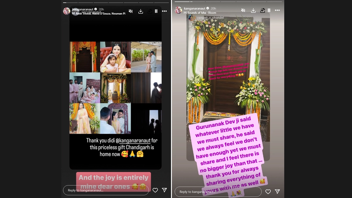 Since entering the political sphere, actress and BJP MP Kangana Ranaut has been grabbing headlines almost daily. Recently, she attended the engagement ceremony of her cousin Varun Ranaut. Now, it has been revealed that the actress-politician generously gifted a lavish apartment to her cousin in Chandigarh. Taking to her Instagram stories on June 17, she reposted a picture from Varun's Instagram story, which read, "Thank you didi @kanganaranaut Chandigarh is home now." Resharing the story, Kangana wrote, "Gurunanak Dev ji said whatever little we have we must share, he said we always fee we don't have enough yet we must share, and I feel there is no bigger joy than that. Thank you for always sharing everything of yours with me as well." Kangana Ranaut's Brother Varun Ranaut Gets Engaged; Mandi MP Shares Glimpses From Engagement Ceremony (View Pics).