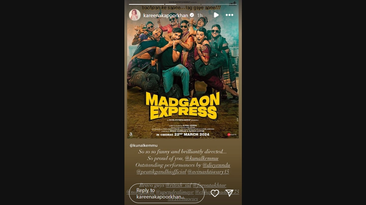 Kunal Kemmu is set to make his directorial debut with Madgaon Express, which stars Divyenndu Sharma, Avinash Tiwary, and Nora Fatehi in the lead roles. Ahead of the film's release on March 22, Kareena Kapoor Khan took to her Instagram Stories to share her review of the comedy-drama. The actress wrote, 'So so funny and brilliantly directed... So proud of you @kunalkemmu Outstanding performances by @divyenndu @pratikgandhiofficial @avinashtiwary15.' Madgaon Express: Kunal Kemmu’s Directorial Debut Film Runtime Revealed! – Reports.