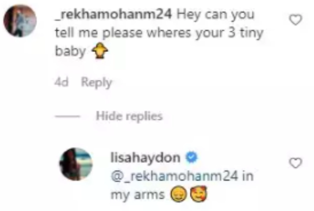 Lisa Haydon and her husband Dino Lalvani are proud parents for the third time. As the actress recently gave birth to a baby girl. However, the Queen actress did not announce the baby girl news via a post on social media, but instead replied to a fan's comment and dropped the good news. When Haydon was asked by a fan, "Hey can you tell me please wheres your 3 tiny baby?" She replied, "in my arms." Well, congrats to the couple!