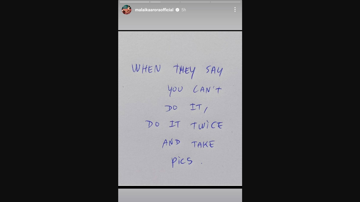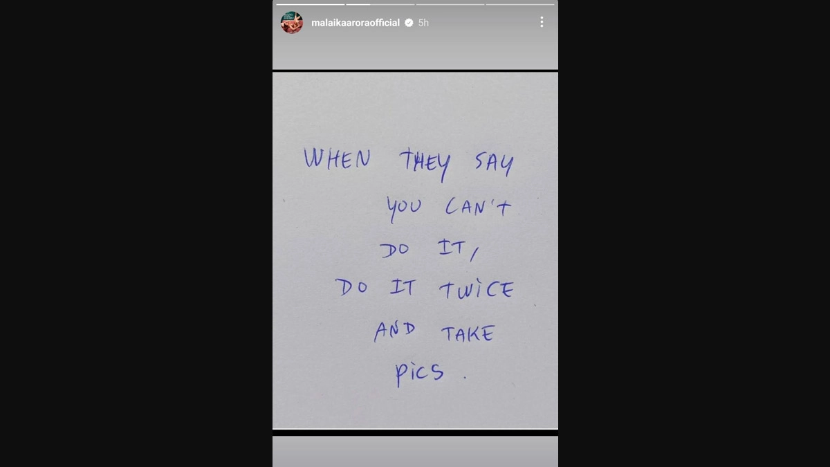 Malaika Arora and Arjun Kapoor, who were in a relationship for several years, have reportedly ended their romance. Amid all the rumours of their breakup, Malaika posted a cryptic message on her Instagram status on Sunday (June 2), stating, "When they say you can't do it, do it twice and take pics." Just a day prior, actor Arjun Kapoor shared a mysterious post on his Instagram story, saying, "We have two choices in life. We can be prisoners of our past or explorers of future possibilities." Arjun Kapoor’s Cryptic Post Adds Fuel To Break-Up Speculation With Malaika Arora.