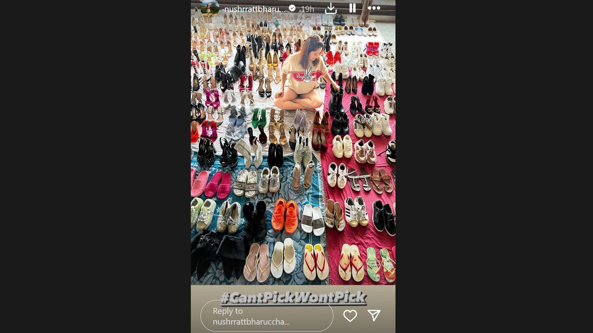 Prepare to be amazed as Nushrratt Bharuccha unveils her very own ‘Shoe Factory’! Well, not exactly a physical space, but the Bollywood actress has graciously offered her fans a sneak peek into her extensive shoe collection on social media. From elegant stilettos to trendy sneakers, her collection boasts a mesmerising array of sleek designs and vibrant colours that are sure to leave fans speechless. Hot Pink Shoes Are a Big Hit Among Celebs From Kylie Jenner to Kareena Kapoor Khan to Hina Khan! View Pics.