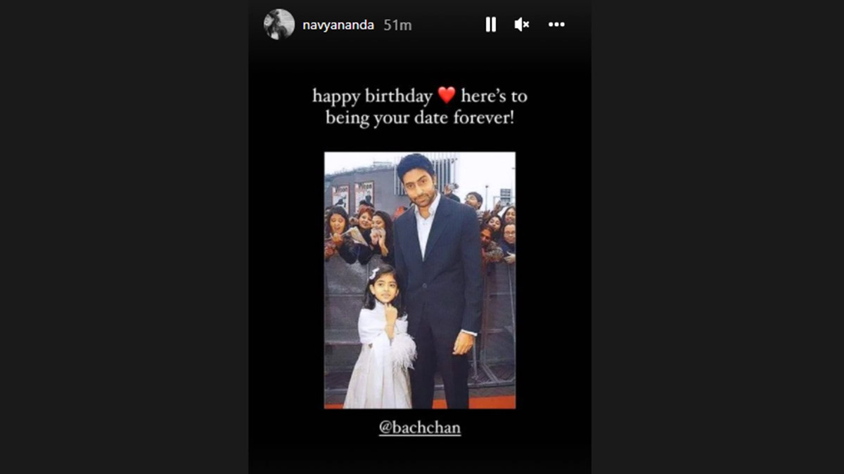 As Abhishek Bachchan turns 46, his niece Navya Naveli Nanda showered love on the actor. Taking to her Instagram story, Navya shared a cute throwback picture of little hers with Abhishek Bachchan and wrote, "Happy birthday. Here's to being your date forever!" Aww. Abhishek Bachchan Birthday: 8 Popular Movie Quotes of the Versatile Actor As He Turns 46!