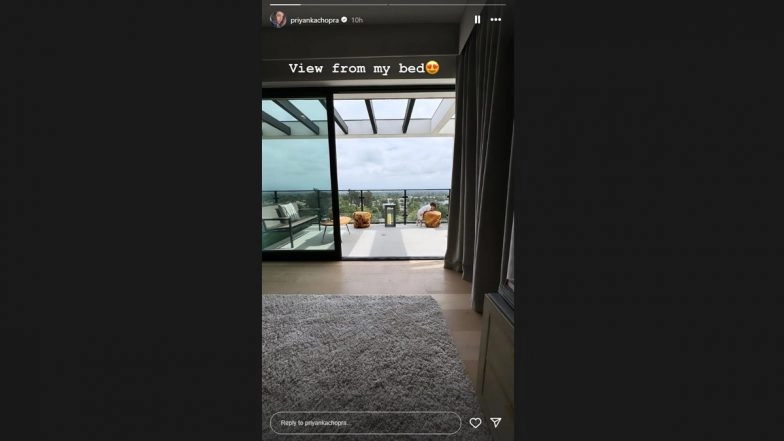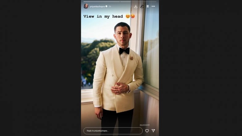Priyanka Chopra loves to keep fans updated with happy glimpses from her daily life on social media. The actress, who shares a deep bond with her husband, Nick Jonas and their daughter, Malti Marie, often posts pictures of them on her Instagram. A few hours back, she again took to her Instagram stories to share glimpses of her favourite "views". The first photo featured her daughter Malti playing on their balcony, captioned "View from my bed". The second photo showed her hubby Nick looking dapper in a white tuxedo, with the caption "View in my head". The actress shared the adorable pictures as she enjoyed the cosy 'view' and the weather. Priyanka Chopra, Katrina Kaif and Alia Bhatt's Jee Le Zaraa Is Back On Track? Here's What We Know About Farhan Akhtar Directorial.