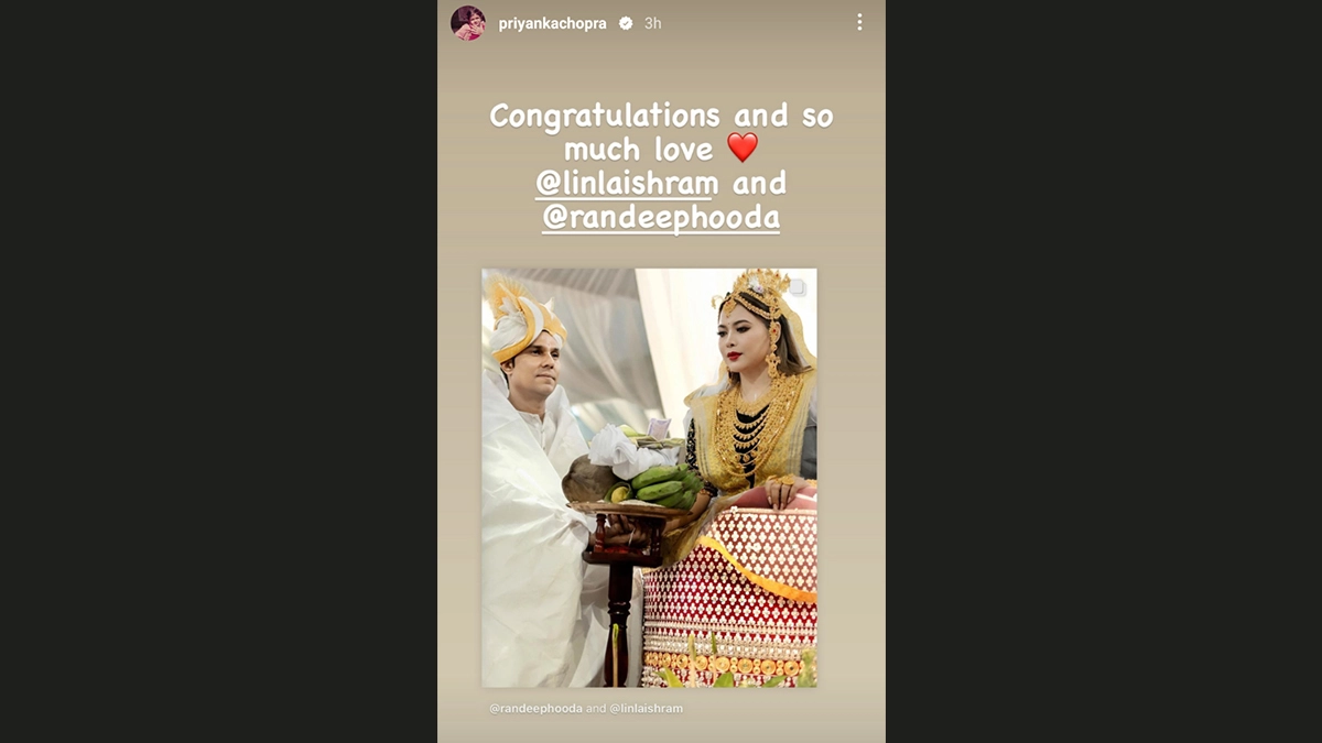Attention, everyone! The long-awaited moment has finally arrived as Randeep Hooda has unveiled photos from his intimate wedding with Lin Laishram. These images were shared by Randeep Hooda on November 29, mere hours following the wedding ceremony in Imphal. Within the snapshots, the couple is elegantly attired in traditional Manipuri garments. The photos offer glimpses of the couple's jaimala ceremony along with other significant rituals. Now, Priyanka Chopra shared one of their wedding picture and congratulated the couple for their marriage. Randeep Hooda and Lin Laishram Wedding: Couple Gets Married in Traditional Meitei Ceremony in Manipur (Watch Videos).