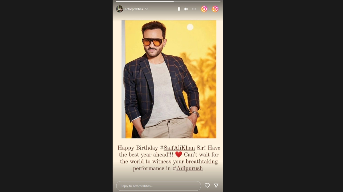 As Saif Ali Khan turns a year older today (August 16), fans as well as celebs are showering love on the Nawab of Bollywood. A few hours back, even, South superstar Prabhas wished Saif via Instagram story and mentioned how he wants the world to see Khan's 'breathtaking' performance in Adipurush. FYI, the said film will see Saif as villain against Prabhas. Saif Ali Khan Turns 52! Sara Ali Khan Shares Unseen Throwback Pics to Wish ‘Abba Jaan’ on His Birthday (View Pics).