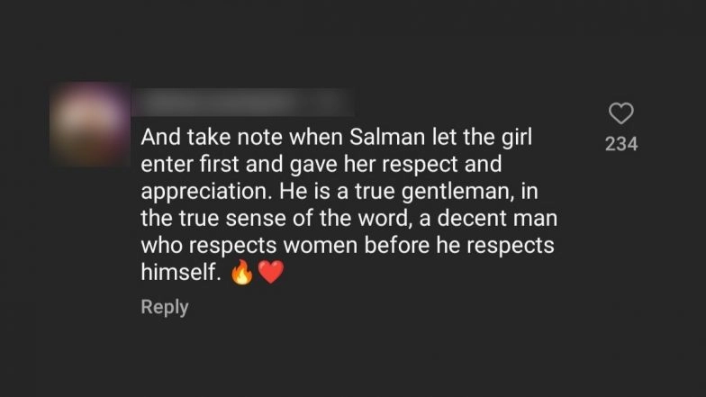 Bollywood superstar Salman Khan graced the grand sangeet ceremony of Anant Ambani and Radhika Merchant at the Nita Mukesh Ambani Cultural Centre in Bandra. Mumbai on Friday (July 5). Several other Bollywood stars were also in attendance, making it a grand affair. Now, in a video that is doing rounds on the internet, Salman Khan has won the hearts of his fans by letting a social media influencer pose first before the paps at the sangeet ceremony. In a viral clip, Bollywood superstar Salman Khan can be seen requesting social media influencer Radhika Seth to pose first. Despite her insistence that he should go ahead, Khan graciously refused and patiently waited his turn, allowing the young lady to take the spotlight. This gesture by Salman Khan has left netizens in awe of his gentlemanly behaviour. Video of Salman Khan Grooving to 'Aisa Pehli Baar Hua Hai' Song With Anant Ambani From Latter's Sangeet Ceremony Goes Viral – WATCH.