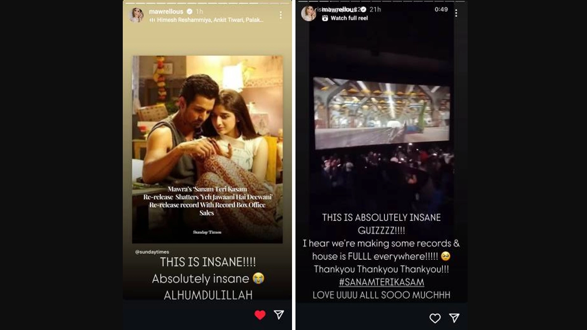 Sanam Teri Kasam, originally released on February 5, 2016, had grossed approximately INR 1.25 crore on its opening day and earned INR 4.66 crore over its first weekend. The romantic drama, starring Harshvardhan Rane and Mawra Hocane, made a grand comeback in theaters on February 7, 2025, and has astonishingly surpassed its original lifetime collection within just two days. On its re-release debut, the film raked in INR 5.14 crore, followed by INR 6.22 crore on February 8, bringing its total to INR 11.36 crore. Overjoyed by the overwhelming response, the lead actors expressed their happiness as Sanam Teri Kasam set new records at the Indian box office. ‘Sanam Teri Kasam’ Re-Release Advance Bookings: Harshvardhan Rane and Mawra Hocane’s Film Sells Over 20,000 Tickets in 12 Hours.