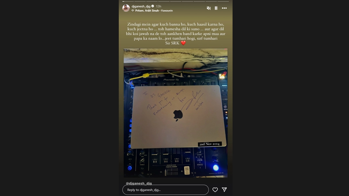 DJ Ganesh took to Instagram to showcase his ‘Best Diwali Gift’ from none other than Bollywood superstar Shah Rukh Khan. The celebrity DJ, who entertained guests at SRK’s 59th birthday celebration at his iconic Mumbai mansion, Mannat, expressed his heartfelt gratitude on social media. In his post, DJ Ganesh revealed the Apple MacBook penned with a special note from King Khan, along with SRK's autograph. He wrote, “A Special Note From the king himself @iamsrk. I feel so blessed to be part of Sir SRK's parties the last few years. It feels like the best Diwali gift I could ask for.” This is truly the best surprise anyone could receive from SRK. Shah Rukh Khan Quits Smoking; Fans Cheer As the Superstar Makes the Announcement (Watch Video).