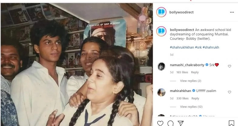 Shah Rukh Khan's old photo as a teenager is doing the rounds of the internet. It reached Instagram and made many sigh with admiration! One of them is his Raees co-star Mahira Khan who went 'Uff Zaalim!' on his photo. There's also Fatima Sana Shaikh who just can't help but sigh while Mithun Chakraborty's son Namashi hearts it.