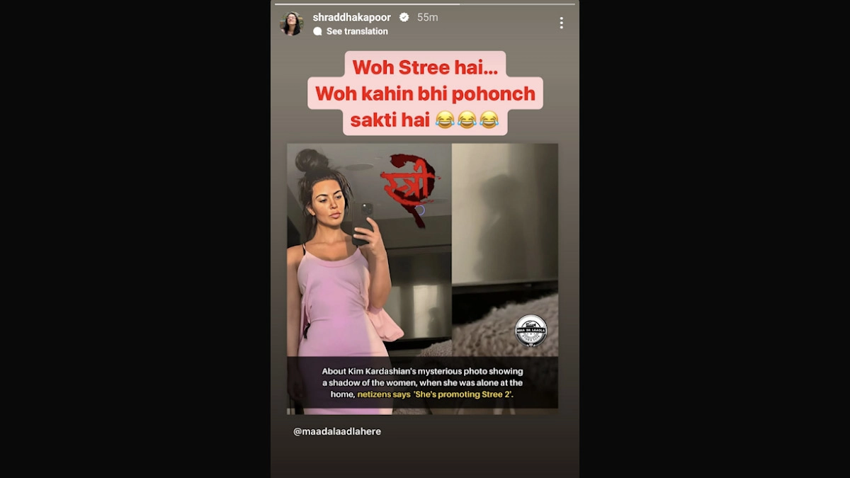 Shraddha Kapoor's goofy idea needs no introduction and the actress leaves no chance to share a laugh or two with her fans. Lately, Kim Kardashian's mirror selfie with a mysterious eerie shadow is going viral. Kim even wrote, “Soooo I took this pic last week when I was alone and now going through my phone I am freaking out noticing a woman in the window." Seeing this, Shraddha took to her social media account and shared a hilarious response to it. She wrote, "Woh Stree Hai... Woh Kahin bhi pochonch sakti hai." Well, we hope Kim checks this post and responds to Shraddha, maybe these two celebrities can join hands and solve the Stree issue. Stree 2 Shoot Begins! Shraddha Kapoor, Rajkummar Rao and Pankaj Tripathi's Film to Release in August 2024 (Watch Video).
