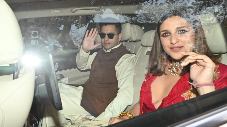 There had been a lot of speculations over why Parineeti Chopra was missing her cousin's brother Siddharth Chopra's wedding festivities in Mumbai. The speculations only increased after the Amar Singh Chamkila actress dropped a cryptic post on her IG about "choosing people that choose you." However, the actress has now shut the feud rumours with Priyanka Chopra and her family as she was spotted attending the wedding with her politician husband Raghav Chadha. In the pictures, Parineeti looked stunning in a lehenga paired with a red blouse and matching embroidered jacket. ‘Choose People That Choose You’: Parineeti Chopra Drops Cryptic Note After Missing Priyanka Chopra’s Brother Siddharth Chopra’s Wedding Festivities.